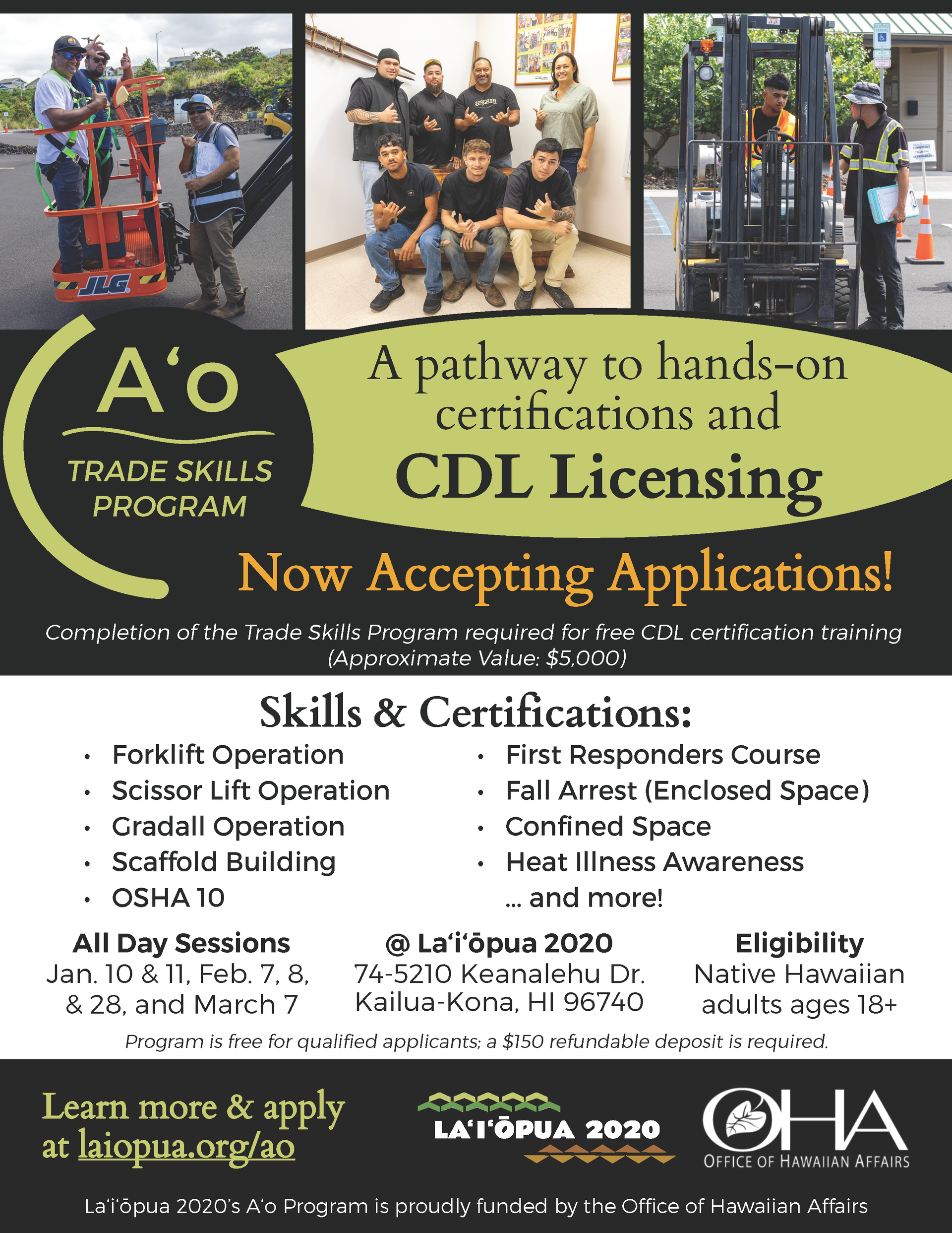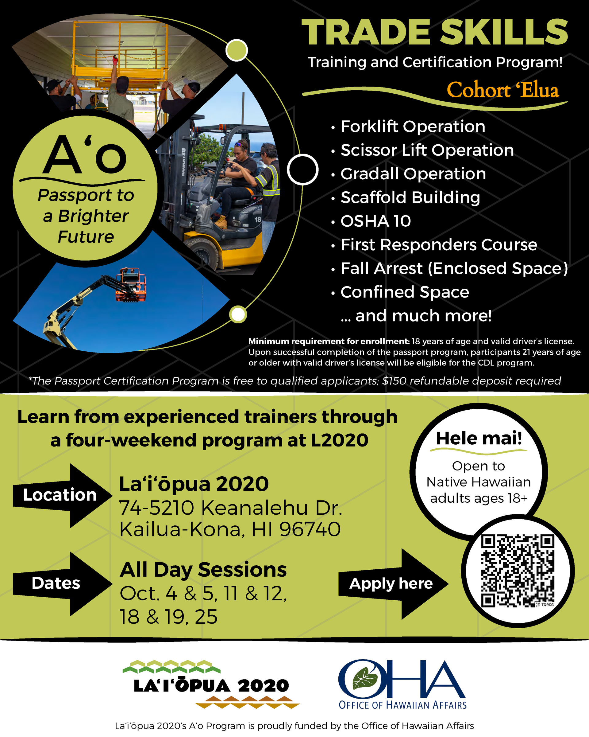 Laʻiʻōpua 2020's trade skills training and certification program for Native Hawaiian adults